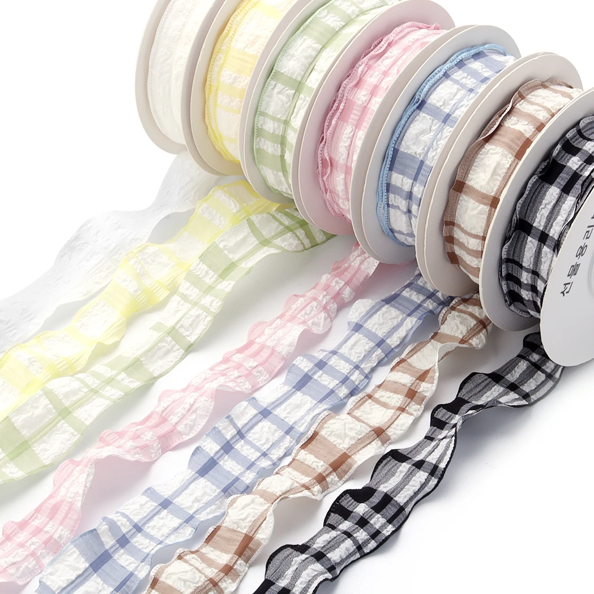 10Yards/Lot 2.5cm Polyester Plaid Ribbons Wrinkled Seersucker Ribbon For DIY Sewing Crafts Gift Cake Packaging Party Decor