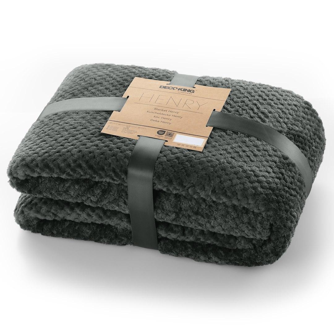 Plaid tæppe DecoKing Henry flaskegrøn, jacquard-præget, 170×210 cm