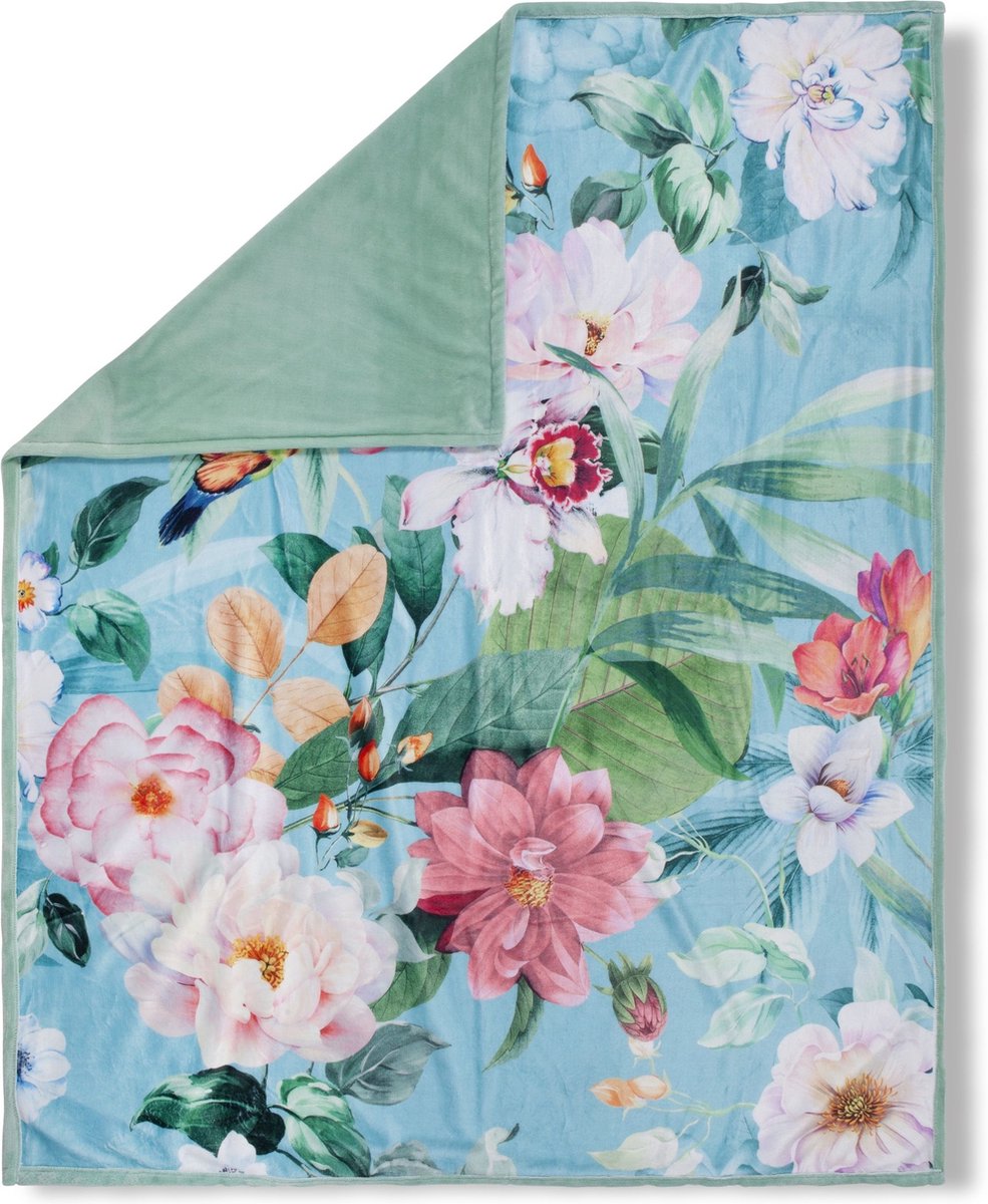 Luxe Polyester Plaid 130×160 cm – Bloemen en Vogels Print – Multi – Voor 1 Persoon – Descanso