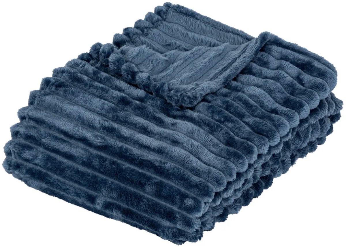 Plaid i teddy fleece – 130×170 cm – Blå – Blødt tæppe fra Nordstrand