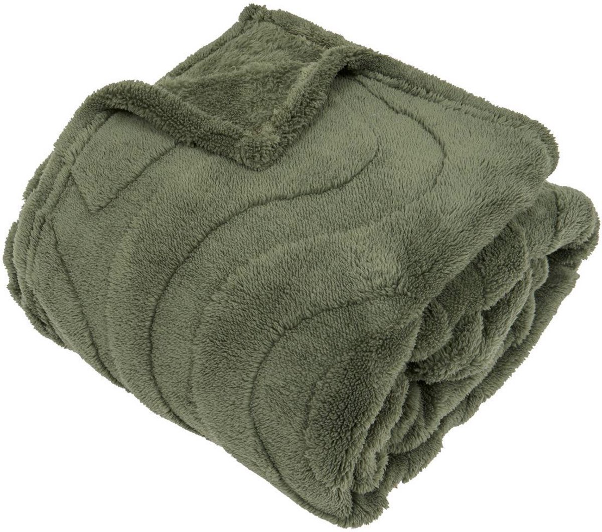 Plaid i teddy fleece – 120×160 cm – Støvet grøn – Blødt tæppe fra Nordstrand